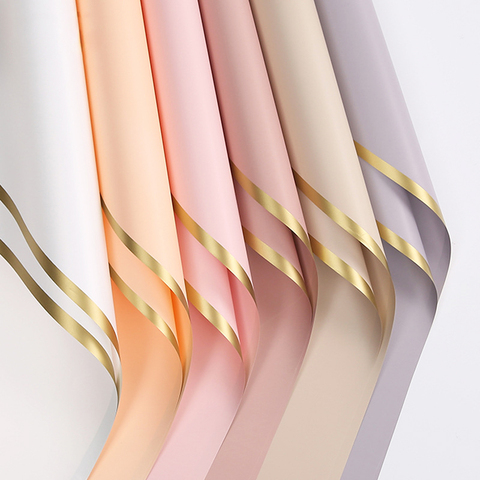 高品質無地ゴールドフレーム花包装紙プラスチック防水ブーケギフト包装紙